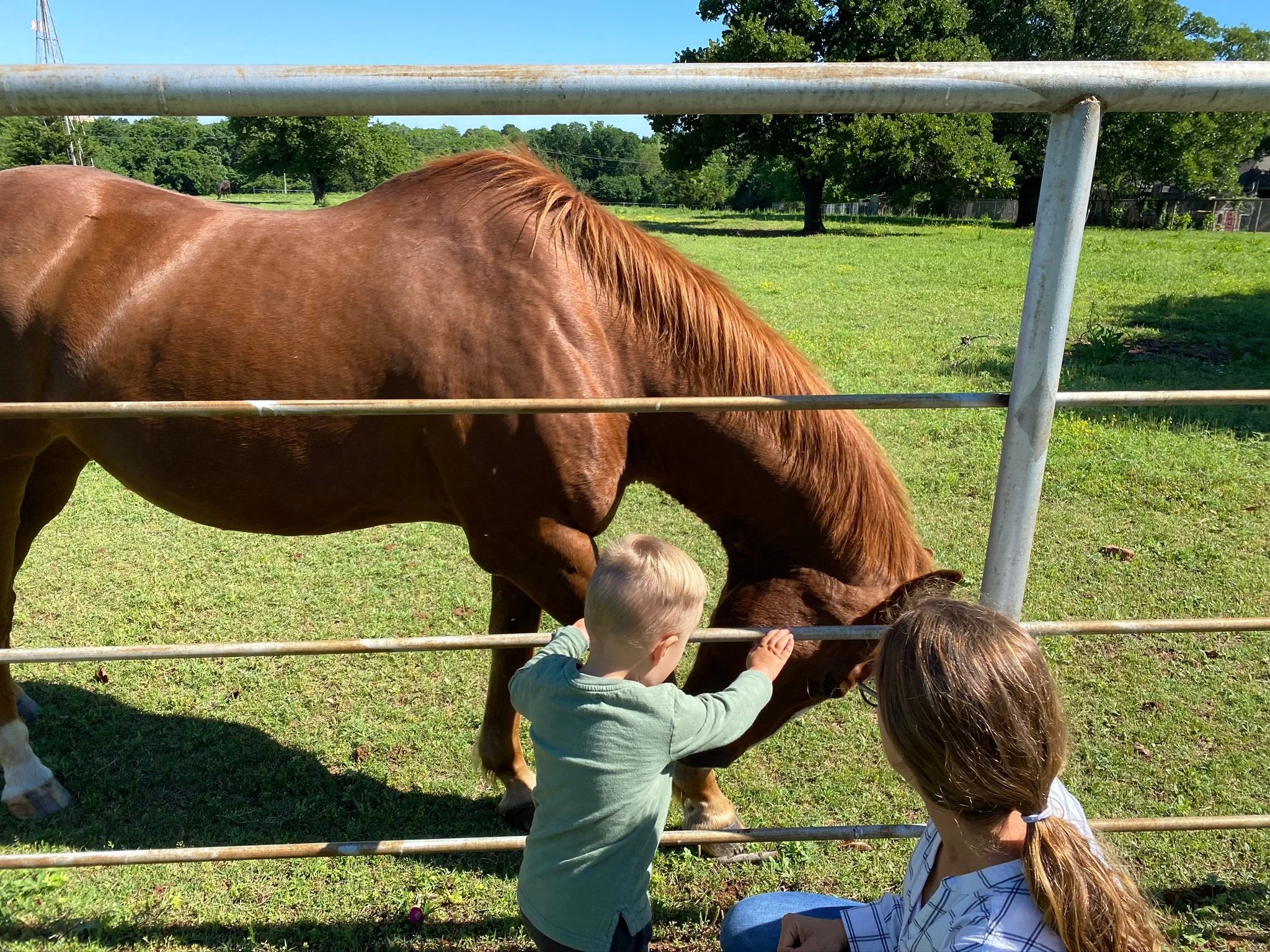 Visiting the country, Joy teaches our son about the majestic animals of the farm.